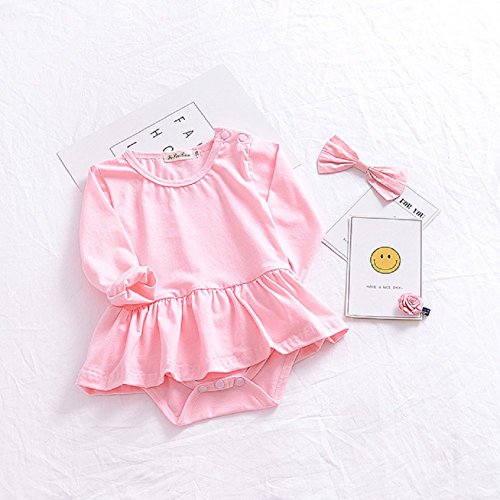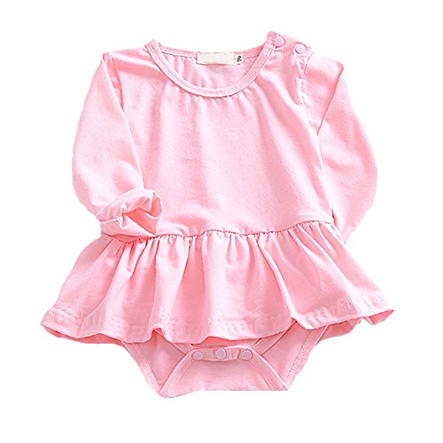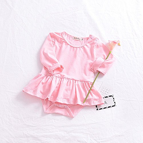 Ochine 新生児 幼児 女の子 ロンパース 純色 子供服 0-2歳設定 長袖 カバーオール 出産祝い 4サイズ選べる (ピンクXL、18-24月)