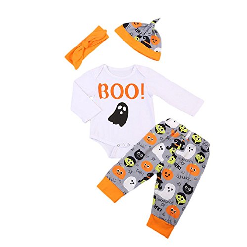 Ochine ハロウィーン 男女兼用 かわいい ベビー服 新生児服 長袖コスチューム衣装セット ロンパース+ロングパンツ+帽子+ヘアバンド 万聖節 ハロウィン祭り