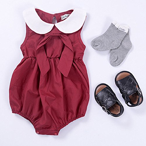 Ochine 新生児服 ベビー服 カバーオール ノースリーブ ホワイト襟付き ロンパース 春秋用 パジャマにも 可愛い 普段着 ワインレッド/ピンク 出産祝い 70 80 90 100