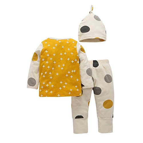 Ochine Baby 赤ちゃん 新生児服 トップス+ロングパンツ 帽子付き ドット柄 綿製品 ふんわり柔らかい肌触り お出かけ着&ルームウェア 洋式 秋 冬 出産祝い 贈り物 3色選択
