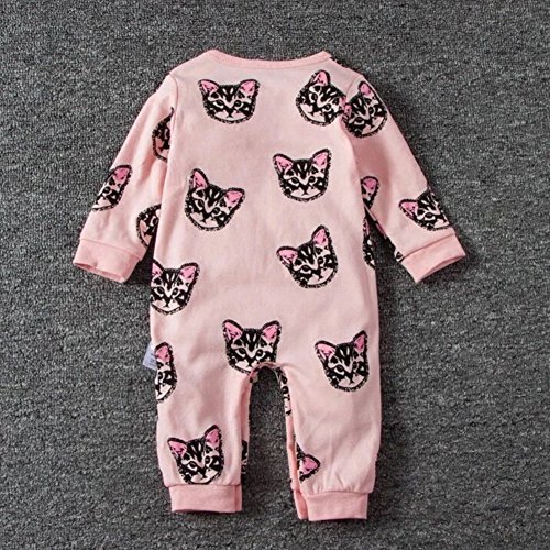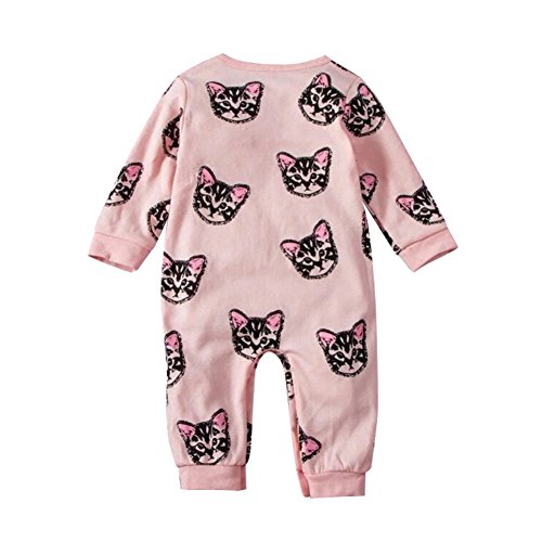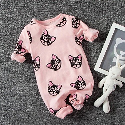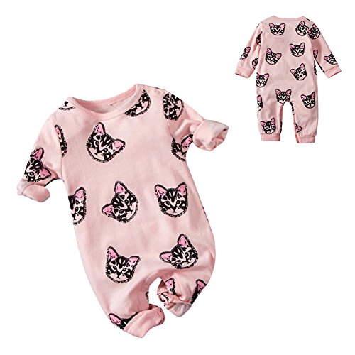 Ochine 春秋 ベビー服 新生児服 ロンパース お着替え簡単 カバーオール 子猫柄 ピンク 男の子 女の子 長袖 コットン 0-24M 満月/お出産祝い/プレゼント