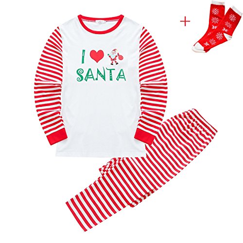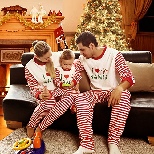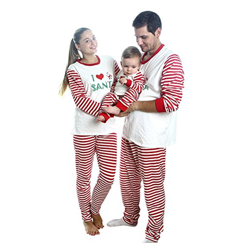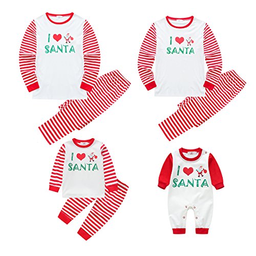 Ochine 親子服 ルームウェア 家族揃い パジャマ トップス+ロングパンツ 二点セット 子供服 赤ちゃん ロンパース カバーオール クリスマス I LOVE SANTA 綿97% パパとママと子供とベービー 弾力性あり