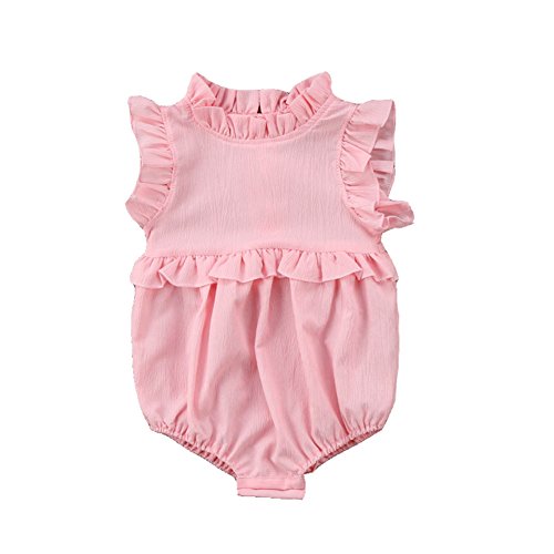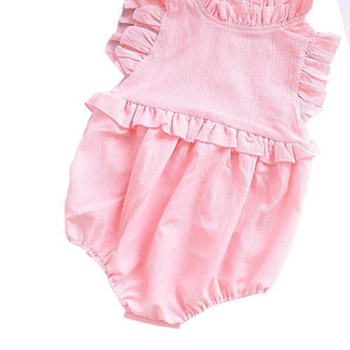 Ochine 夏 ノースリーブ ベビー ロンパース 新生児 カバーオール 無地 100%綿製 ベビー服 子供服 フリルデザイン 歩行服 記念日 出産お祝い 70 80 90 100