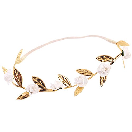 Ochine 新生児 赤ちゃん 出産祝い ベビー キッズ ヘアバンド 新生児ヘアバンド ガールズアバンド 赤ちゃんもオシャレに♪ ローズ&リーフ 弾力性 7色選択 (ホワイト)