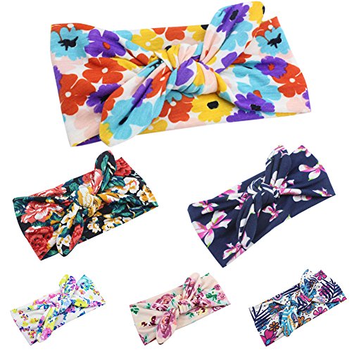 Ochine 新生児 赤ちゃん 出産祝い ベビー キッズ ヘアバンド 赤ちゃんもオシャレに♪ フラワー柄 弾力性 可愛いボウ 6色セット