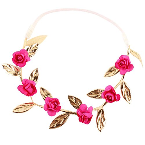 Ochine 新生児 赤ちゃん 出産祝い ベビー キッズ ヘアバンド 新生児ヘアバンド ガールズアバンド 赤ちゃんもオシャレに♪ ローズ&リーフ 弾力性 7色選択 (ローズレッド)