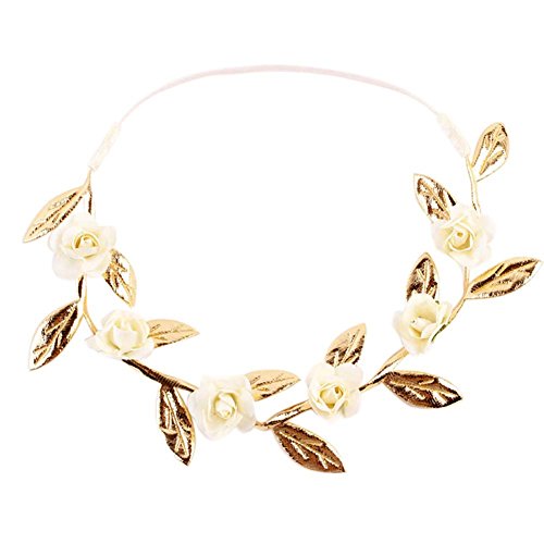 Ochine 新生児 赤ちゃん 出産祝い ベビー キッズ ヘアバンド 新生児ヘアバンド ガールズアバンド 赤ちゃんもオシャレに♪ ローズ&リーフ 弾力性 7色選択 (ベージュ)