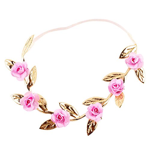 Ochine 新生児 赤ちゃん 出産祝い ベビー キッズ ヘアバンド 新生児ヘアバンド ガールズアバンド 赤ちゃんもオシャレに♪ ローズ&リーフ 弾力性 7色選択 (ピンク)
