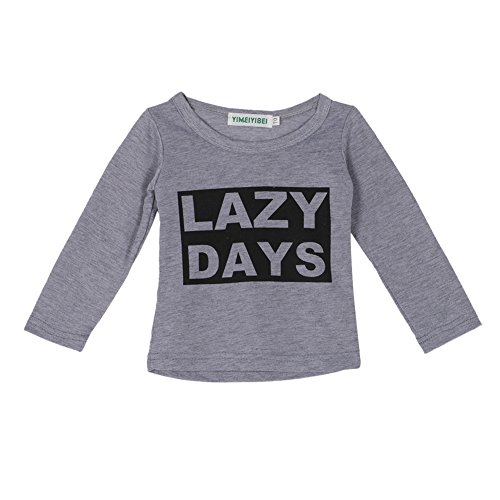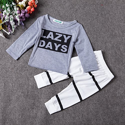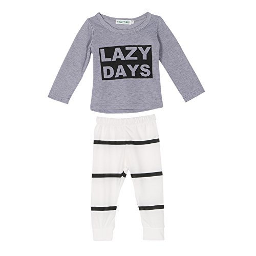 Ochine ベビー服 長袖 LAZY英字プリントTシャツ & ストライプパンツ 上下 2点セット 長袖 ウエスト ゴム 仕様 セットアップ 子供服 ベビー パジャマ 普段着 ユニセックス 子供 ベビー 服 男女兼用 (L、3-4歳)