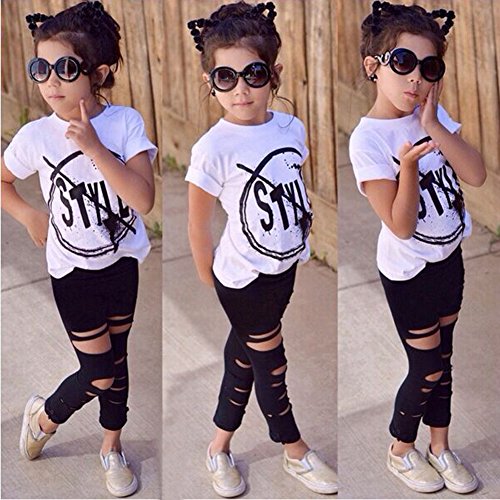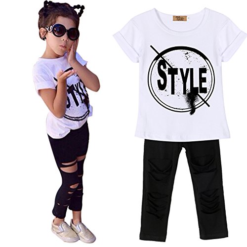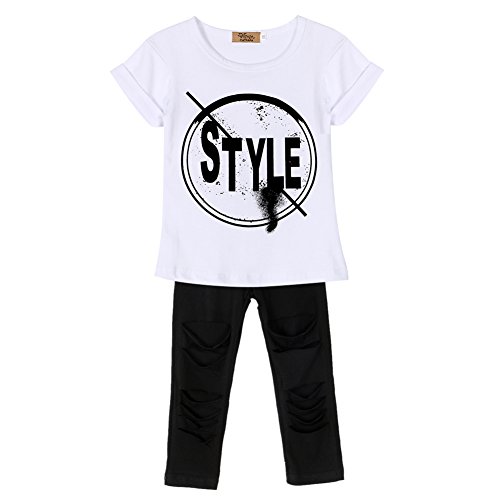 Ochine 長袖 STYLE英字プリントTシャツ&キツイパンツ 上下 2点セット 長袖 ウエスト ゴム 仕様 セットアップ 子供服 ベビー パジャマ 普段着 子供 ベビー 服 女の子 (L、5-6歳)