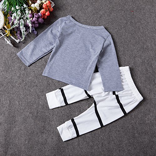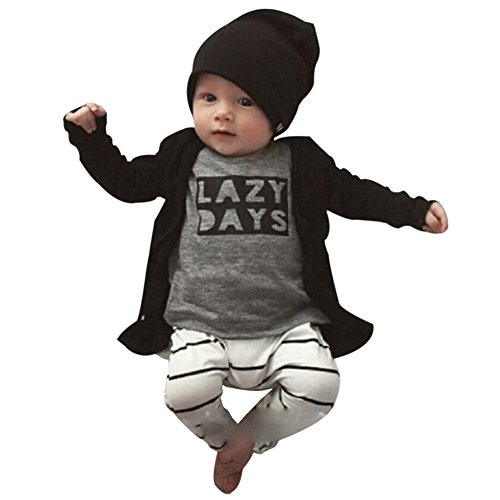 Ochine ベビー服 長袖 LAZY英字プリントTシャツ & ストライプパンツ 上下 2点セット 長袖 ウエスト ゴム 仕様 セットアップ 子供服 ベビー パジャマ 普段着 ユニセックス 子供 ベビー 服 男女兼用 (XL、4-5歳)