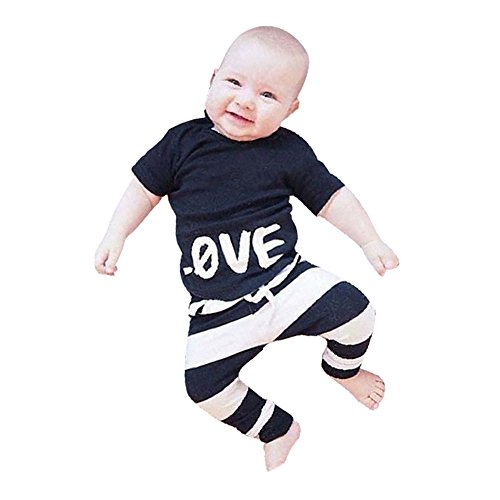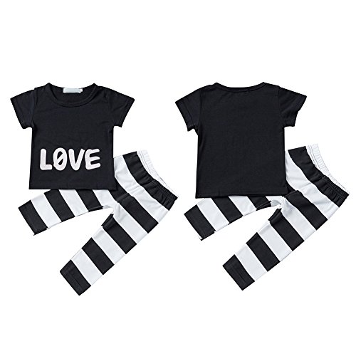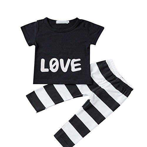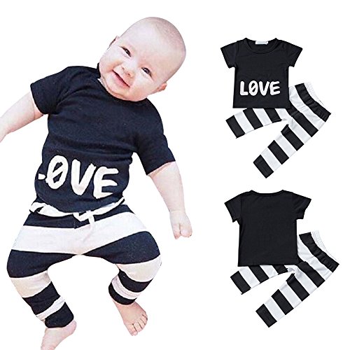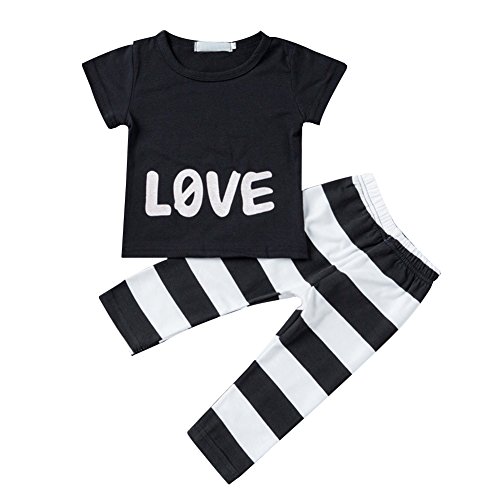 Ochine 新生児 幼児 キッズ 短袖 Tシャツ+ストライプパンツ 2点セット 男女兼用 コットンブレンド LOVEプリント 子供服 カバーオール 出産祝い 70-120 0-4歳設定