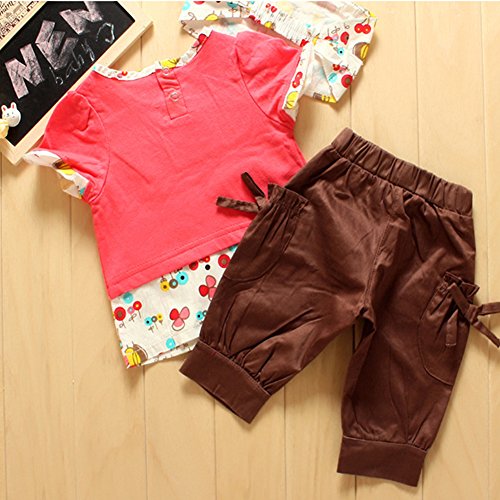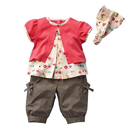 Ochine 子供服 ベービー服 女の子 セット服 セットアップ 果物柄Tシャツ+ショットパンツ+ヘアバンド 上下3点セット コットンブレンド 春 夏 3サイズ選べる 0-3歳設定 和風服 誕生日 子供の日 遊園地に