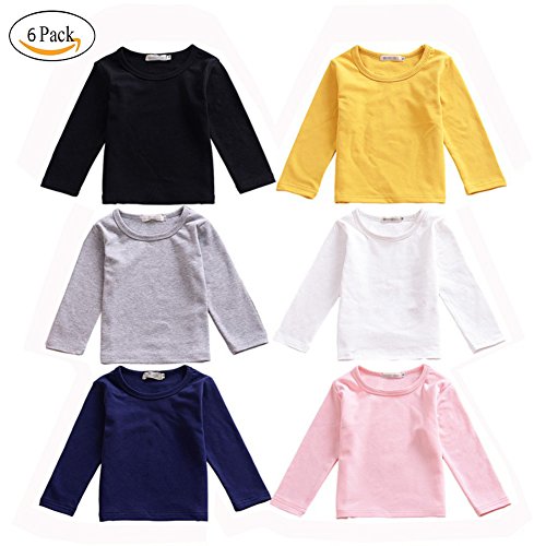 Ochine 6枚セット 長袖カットソー Uネック 女の子Tシャツ ボトムシャツ 普段着 綿 春 秋 赤ちゃん キッズ 子供服 ロンT トップス ガールズ 無地 六色展開