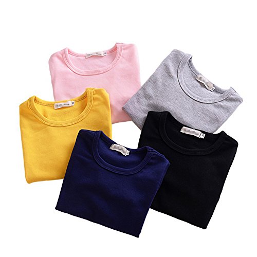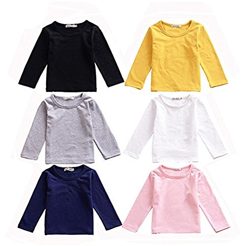 Ochine 6枚セット 長袖カットソー Uネック 女の子Tシャツ ボトムシャツ 普段着 綿 春 秋 赤ちゃん キッズ 子供服 ロンT トップス ガールズ 無地 六色展開
