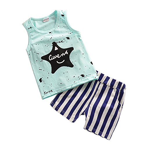 Ochine 子供 星プリントベスト+ストライプショートパンツ 綿布 上下2点セット 子供洋服 セットアップ 誕生日 入学ギフト 出産祝いに