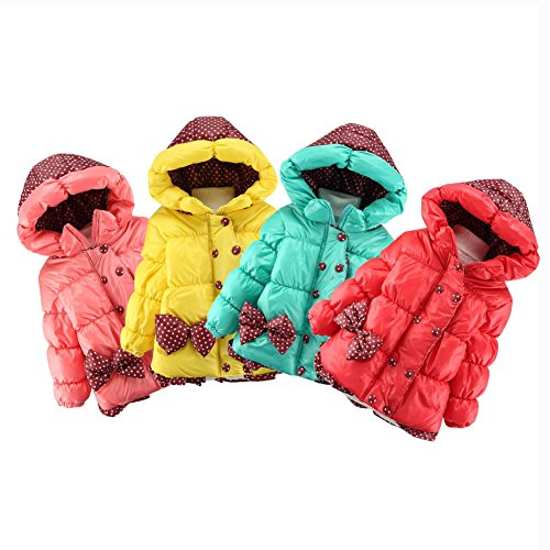 Ochine 韓国風 可愛い子供服 蝶結び フード付き 暖かい 厚いダウンジャケット お出かけコート 防寒服