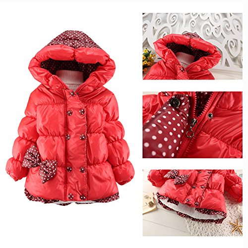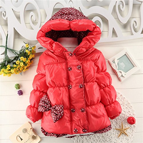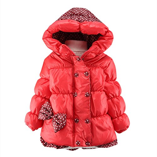Ochine 韓国風 可愛い子供服 蝶結び フード付き 暖かい 厚いダウンジャケット お出かけコート 防寒服