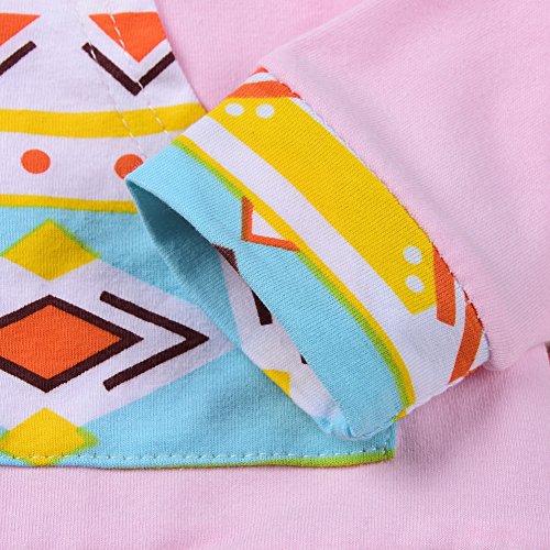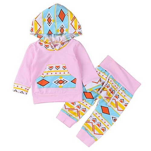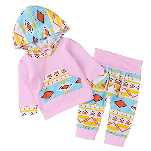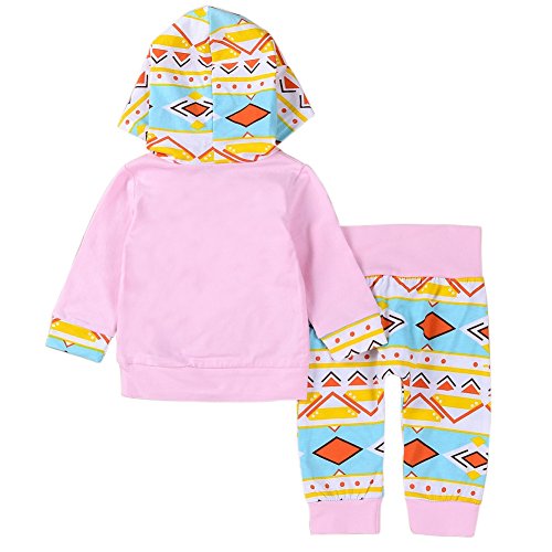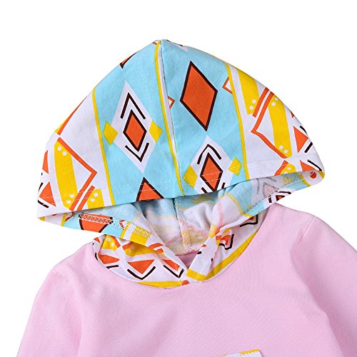 Ochine 新生児 幼児 女の子 ピンク スウェット+ロングパンツ 綿 長袖 フード付き 幾何学グラフ柄 カバーオール パジャマにも 3-18ヶ月に 70 80 90 100