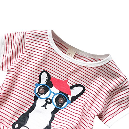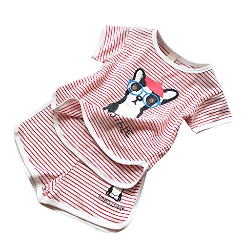 Ochine 子供服 ベビー服 男の子 女の子 トップス+ズボン プルオーバー 可愛い犬柄 ストライプ 薄手 半袖 肌着 夏 保育園 セットアップ服 カジュアル お出かけ 旅行 出産祝い 12~24月
