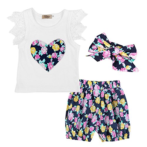 Ochine 幼児 女の子 Tシャツ+ショートパンツ+ヘッドバンド コットンブレンド 花柄 上下2点セット 子供洋服 セットアップ 誕生日 出産祝いに