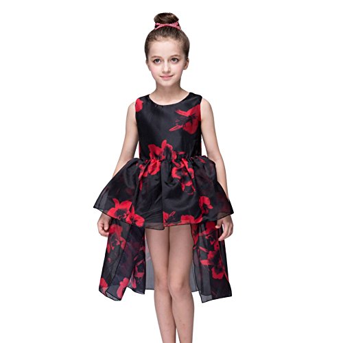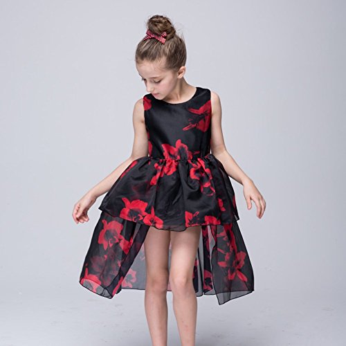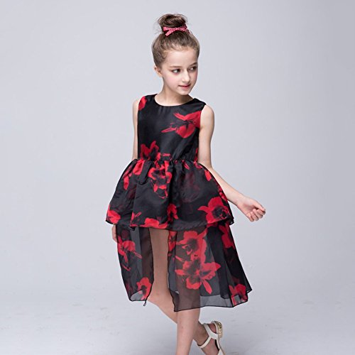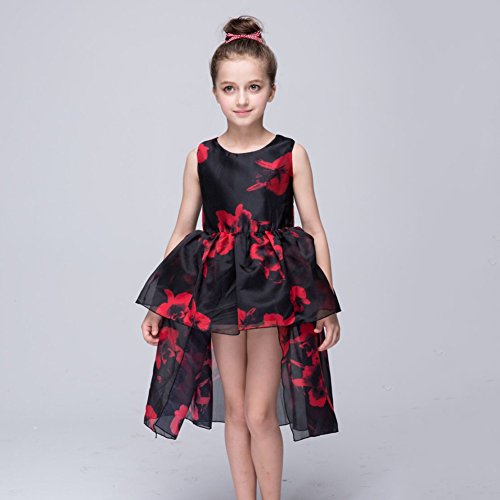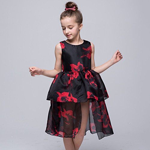 Ochine おしゃれ 上質なオーガンジ 女の子ワンピース 子供ドレス 鮮やかな花プリントドレス ファション お姫さまノースリーブ