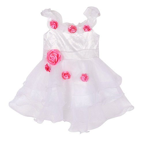 鮮やかなバラの柄入りスカートと華やかな一枚です、お花飾りがアクセントとなり高級感が溢れ出します。