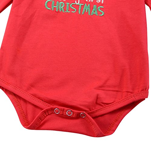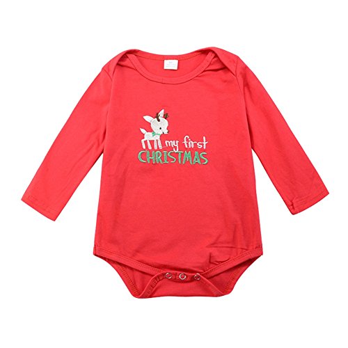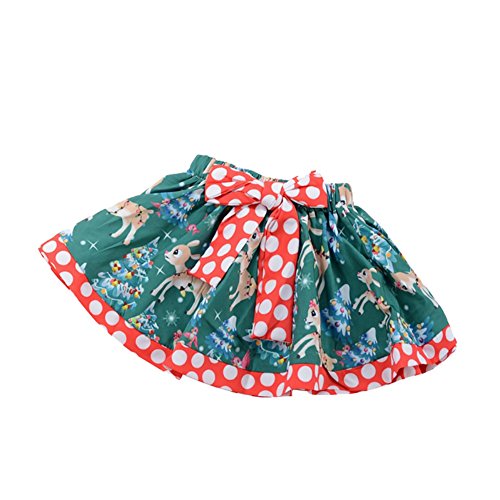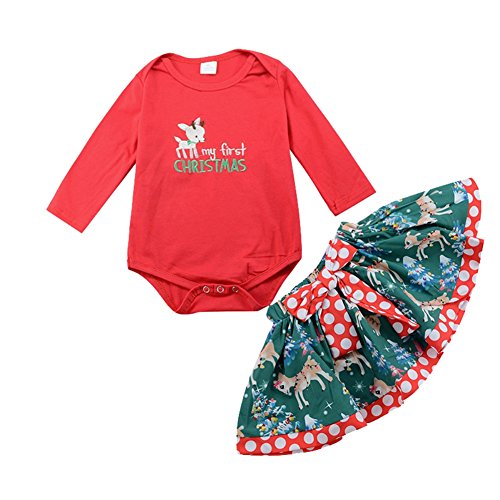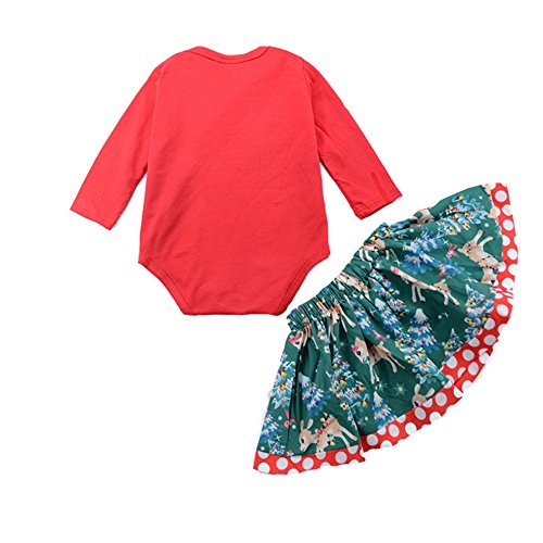 Ochine 新生児 クリスマス レッドロンパース+鹿柄スカート 蝶結び付き 上下2点 セット服 長袖ロンパース クリスマスギフト 出産祝い 70 80 90 100