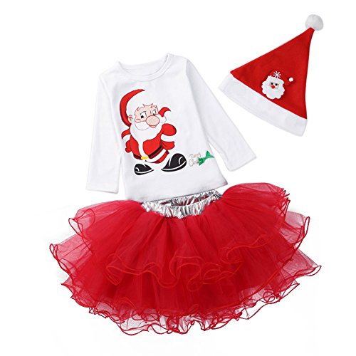 Ochine ファッション クリスマス Tシャツ+スカート+帽子 女の子 かわいいデザイン ガールズ 女児 プリンセスドレス クリスマスプレゼント クリスマスパーティー、学校の部活に