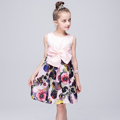 Ochine ファッション 女の子ドレス 袖なし 綺麗な 花の飾り付け 蝶結び フォーマル 子供誕生日パーティー 発表会 結婚式 入園式 演奏会 花嫁介添人 七五三 卒業式 お嬢様のドレス 全二色