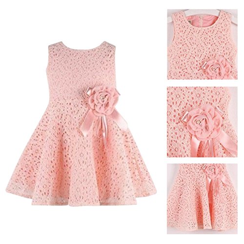 Ochine おしゃれ お姫さまノースリーブりボン飾り レース 綺麗な花の飾り付け 可愛い ベビー普段着 お姫様ドレス 0-18月設定