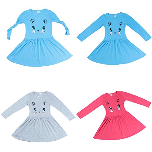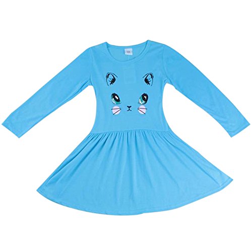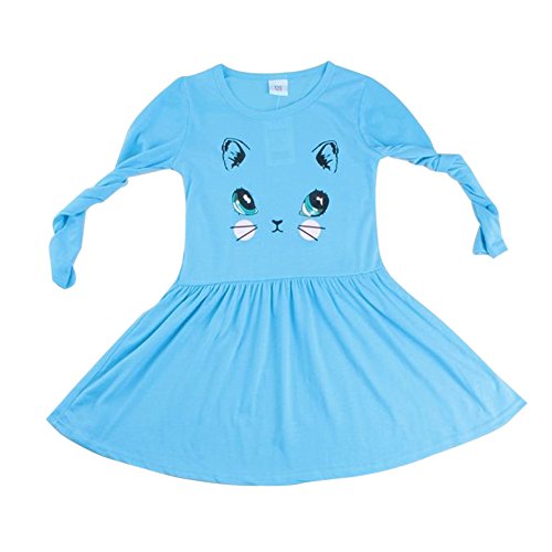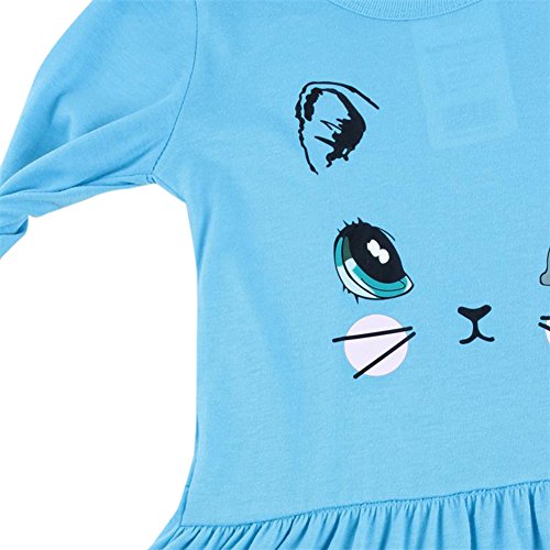 Ochine 女の子 長袖 猫柄 ワンピース ドレス ガールズ 女児 かわいいワンピ 春夏 子供洋服 誕生日 入学式 子供の日 三五七 遊園地 演奏会に