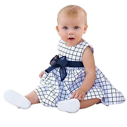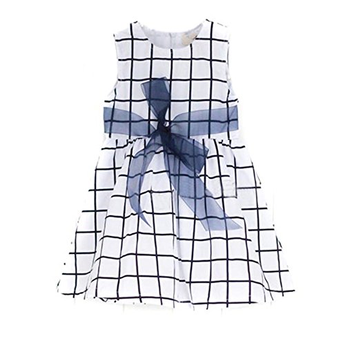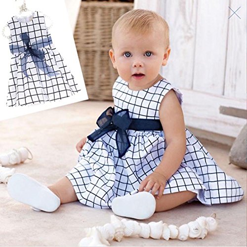 Ochine 夏 ベービー 女の子 ブルー チェック柄 ドレス ワンピース ガールズ 女児 かわいい蝶結び付き プリンセスドレス 春夏 誕生日 入学式 子供の日 遊園地に