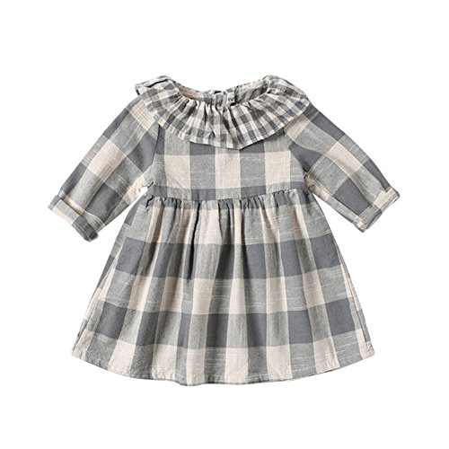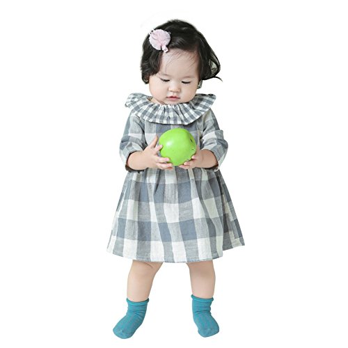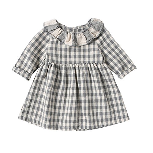 Ochine 格子柄 女の子 かわいい ワンピース 綿100% 長袖ドレス フリル襟 子供服 お姫様 カート 通気性良い 発表会 結婚式 入園式 演奏会 パーティー 80-120cm