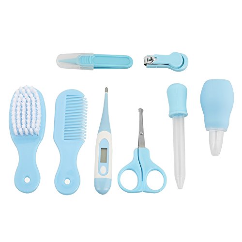 ネイルケア 8点セット ベビーレーベル ネイルケアセット 赤ちゃん爪切りセット キッズ 爪切り 爪やすり ハサミ ピンセット 8点セット (ブルー)