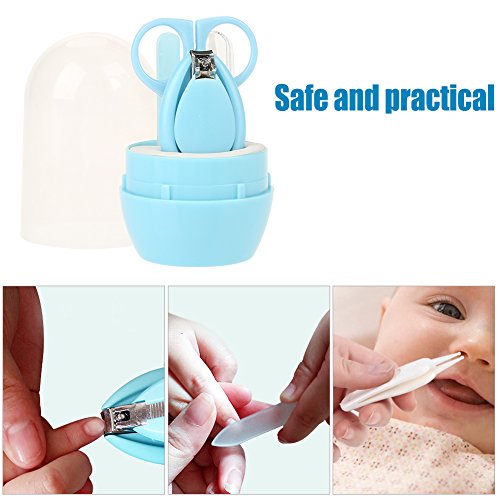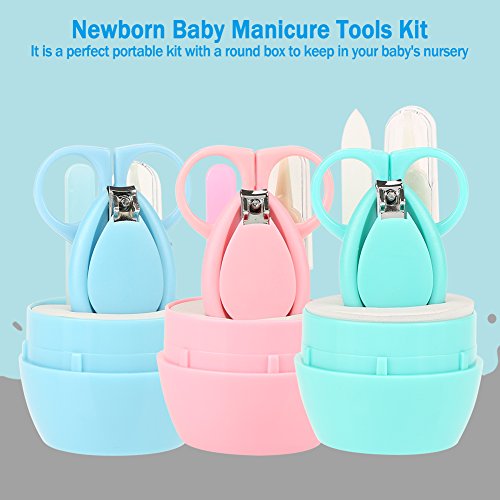 ネイルケア ベビーレーベル ネイルケアセット 赤ちゃん爪切りセット 携帯ケース付属 持ち運び便利 キッズ 爪切り 爪やすり ハサミ ピンセット 4点セット (グリーン)