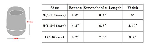 - 0 – 6歳には選択するための3つのサイズ適し'babyA - DサイズS :ボトムの長さ: 4.1 cm、0 – 1歳の赤ちゃん; M :ボトムの長さ: 4.5 cm( E - H ) S : bottom-4.6されていますが、伸縮性抜群のlength-6.4 ," width-3 , 0 – 1yearsの赤ちゃんに適し; M : bottom-4.8 ,伸縮性抜群のlength-6.8 , " width-3.12 ", 1 – 3歳の赤ちゃんに適し; L : bottom-5.2されていますが、伸縮性抜群のlength-7.6」、width-3.2」、3 – 6歳の赤ちゃんに最適です。