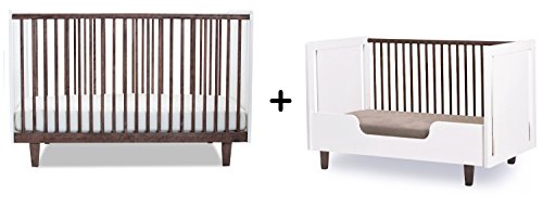 Oeuf Rhea Crib, Walnut/White + Oeuf Rhea Conversion Kit, White Complete Set by Oeuf