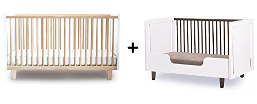 Oeuf Rhea Crib, Birch/White: Fits a standard crib mattress (28 x 52) / Sustainably produced in Europe from solid birch and Baltic birch plywood;Measures 54 L x 30.5 W x 37 H when assembled / Easy to assemble and has 3 adjustable mattress positions / Finishes are non-toxic and free of VOC health hazards;Oeuf Rhea Conversion Kit, White: Sustainably produced in Europe from Baltic birch plywood;Finishes are non toxic, water-based and free of VOC health hazards / Easy to assemble by one person