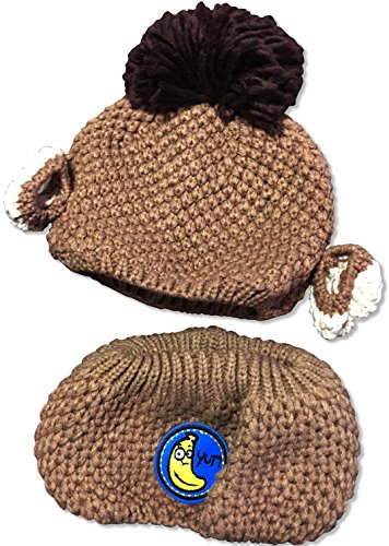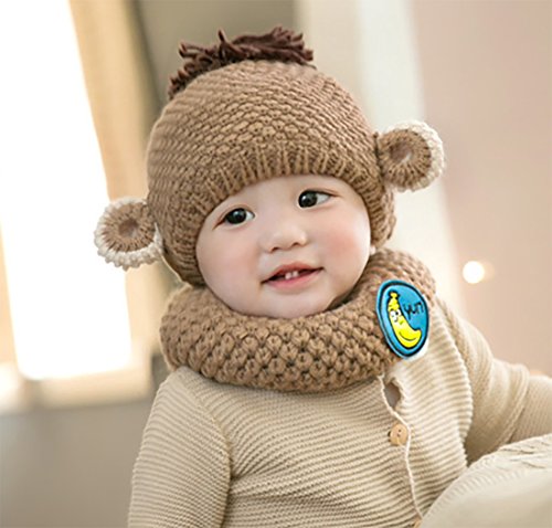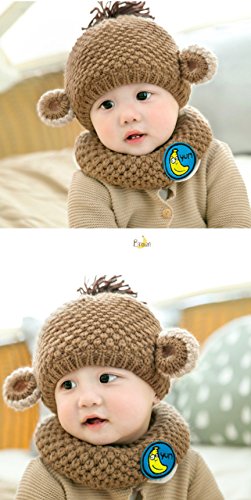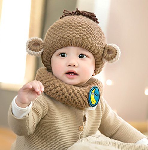 ニット帽 約1-2才向 マフラー2点セット キッズ ニット帽 ベビー おさるのニット帽 (ブラウン)