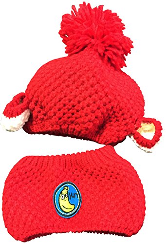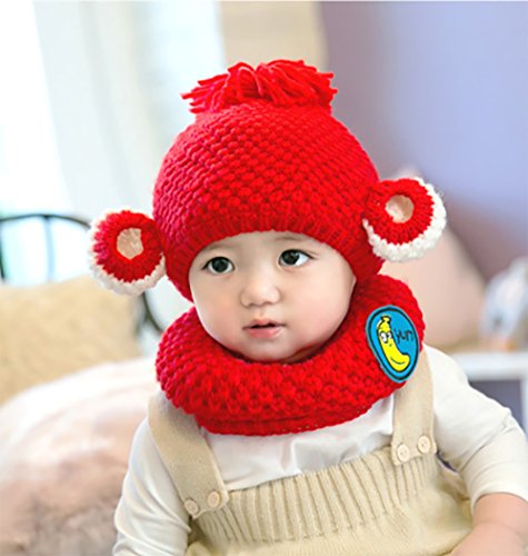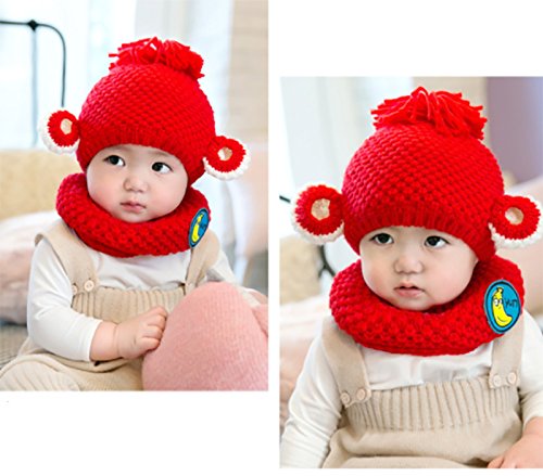 ニット帽 約1-2才向 マフラー2点セット キッズ ニット帽 ベビー おさるのニット帽 (レッド)
