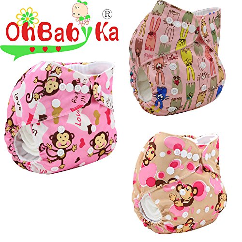 Ohbabyka3点セット おむつカバー 布おむつ ベビー 布オムツ おむつ 新生児用 新生児用品 サイズ調節可 洗濯可能 漏れしにくい パンツ フリーサイズ 通気性良い 保育園 入園準備 女の子 男の子 (K0482OB029)