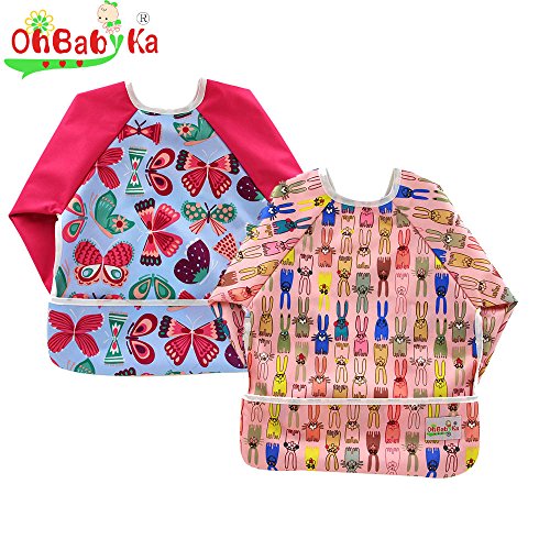 防水エプロン スリーブ付きビブ 長袖ビブ お食事エプロン ベビーエプロン 袖付き スモック よだれかけ 赤ちゃん スタイ 幼児 保育園 (ZY0405)