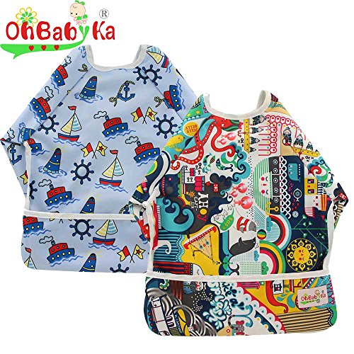 防水エプロン スリーブ付きビブ 長袖ビブ お食事エプロン ベビーエプロン 袖付き スモック よだれかけ 赤ちゃん スタイ 幼児 保育園 (ZY1821)