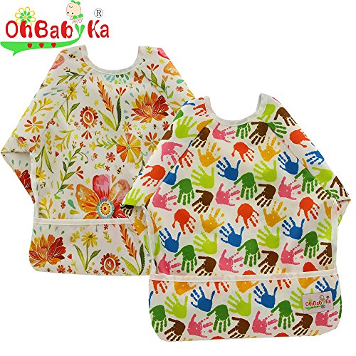 防水エプロン スリーブ付きビブ 長袖ビブ お食事エプロン ベビーエプロン 袖付き スモック よだれかけ 赤ちゃん スタイ 幼児 保育園 (ZY1314)