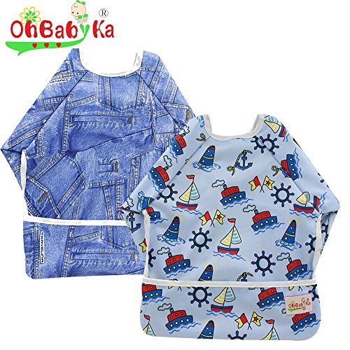 防水エプロン スリーブ付きビブ 長袖ビブ お食事エプロン ベビーエプロン 袖付き スモック よだれかけ 赤ちゃん スタイ 幼児 保育園 (ZY1518)