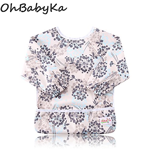 - 柔らか素材の袖付き防水お食事エプロン。でお手入れ楽ちん