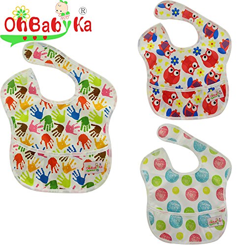 Ohbabyka3点セット スタイ よだれかけ スーパービブ お食事エプロン 防水 袖なし 保育園 お食事用防水ビブ 女の子 男の子 ベビーロンパース (SZY050713)