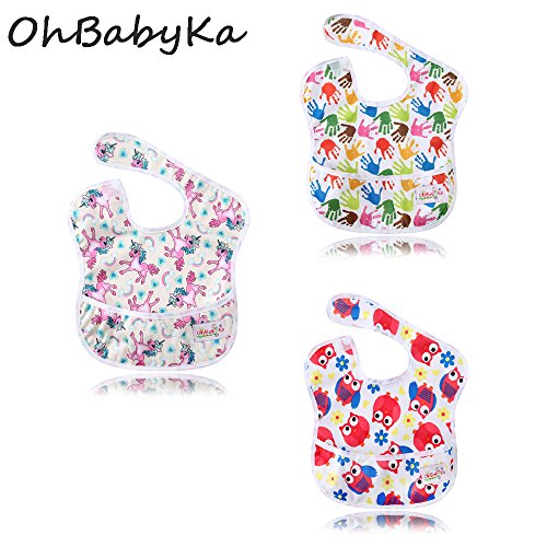 Ohbabyka3点セット スタイ よだれかけ スーパービブ お食事エプロン 防水 袖なし 保育園 お食事用防水ビブ 女の子 男の子 ベビーロンパース (SZY010713)