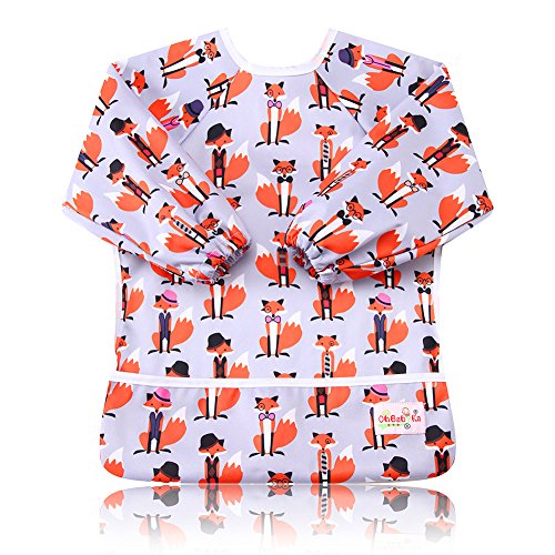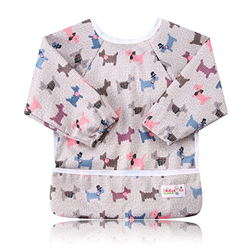 - 柔らか素材の袖付き防水お食事エプロン。でお手入れ楽ちん